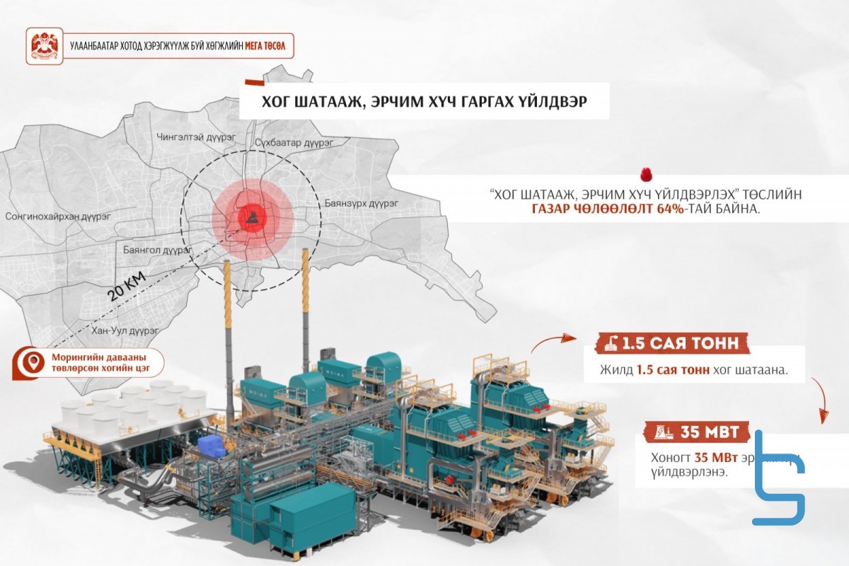Улаанбаатар хотыг хөгжүүлэх мега төслүүдийн хүрээнд Хан-Уул дүүргийн 12 дугаар хороо, Морингийн давааны 10 га газарт жилд 1.5 сая тонн хог хаягдал шатааж, хоногт 35 МВт эрчим хүч гаргах үйлдвэрийг 2025-2028 онд барих юм. Нийслэлд нийт хог хаягдлын 88.6 хувийг булж устгадаг бол ердөө 11.4 хувийг дахин боловсруулдаг. Хогийг булж устгах арга нь байгаль орчинд сөрөг нөлөө ихтэй, метан хийг ихээр ялгаруулдаг. Дээрх үйлдвэрийг барьснаар хогийг булж устгахгүйгээр илүү дэвшилтэт арга болох шатаах аргаар хог хаягдлыг устгаж, мөн эрчим хүч гарган авах боломжтой. Төслийг төр, хувийн хэвшлийн түншлэлээр барих түншлэлийн гэрээг “Рэншоу Сычуань эрчим хүчний хөрөнгө оруулалт, байгаль орчныг хамгаалах” ХХК-тай аравдугаар сард байгуулсан. Бүтээн байгуулалтыг 30 сарын хугацаанд хийх юм.
