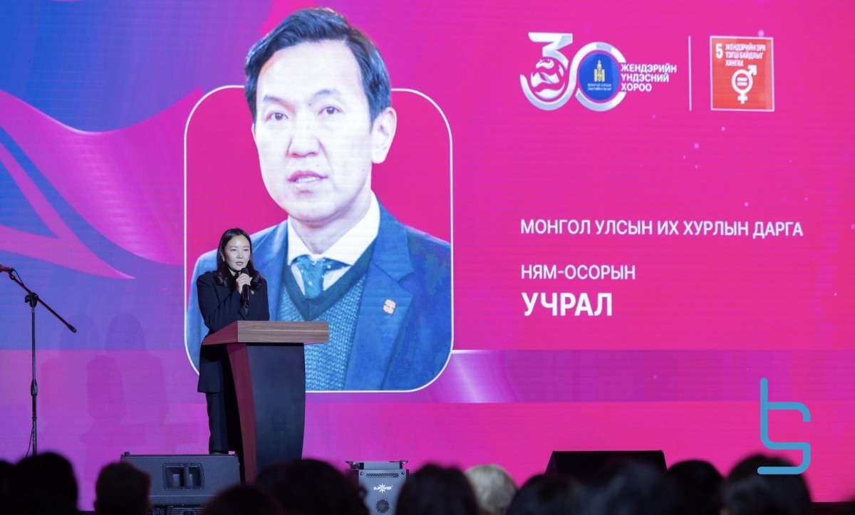 Монгол Улсад Жендэрийн эрх тэгш байдлыг хангах төрийн тогтолцоо үүсэж хөгжсөний 30 жилийн ойн хүндэтгэлийн ёслолд Монгол Улсын Их Хурлын дарга Н.Учрал мэндчилгээ дэвшүүлэв.