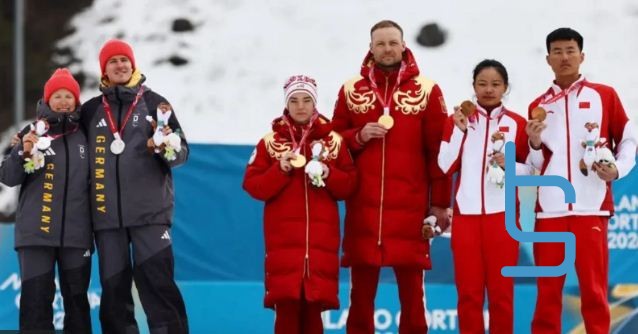 Германы цанын спортын тамирчин Линн Кацмайер болон түүний хөтлөгч Флориан Бауманн нар шагналын тавцан дээр гарч зогсох үеэрээ Оросын тамирчны эсрэг нуруугаа харуулан зогсчээ. Спринт төрөлд Оросын тамирчин Анне Багиян алтан медаль хүртэж, харин Германы тамирчин мөнгөн медалийн эзэн болжээ.