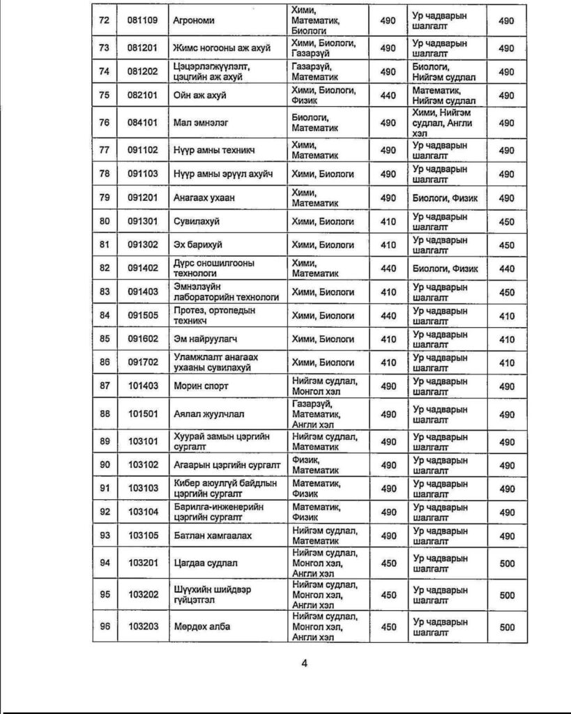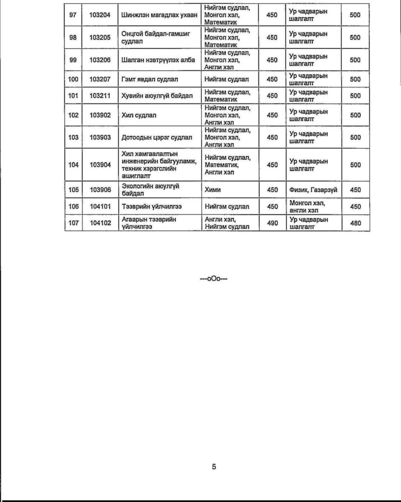 Элсэлтийн ерөнхий шалгалтын босго оноог 450-500 байхаар тогтоожээ.