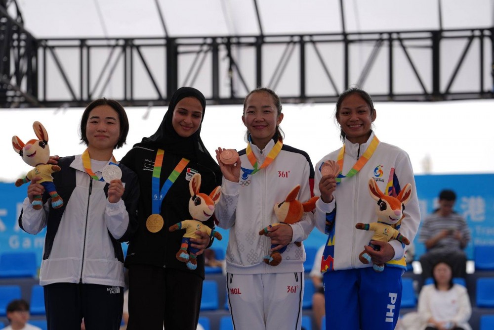 Энэхүү наадмын жиү-жицү бөхийн эмэгтэйчүүдийн -52 кг-ын жинд Г.Монголжин хүрэл медаль хүртлээ.Тэрээр эхний даваанд БНСУ-ын тамирчин Пак Жонхэг цэвэр (SUB) буулган авч, илт давуу ялалт байгуулсан юм. Хэдийгээр дараагийн барилдаандаа Арабын Нэгдсэн Эмират Улсын тамирчин Асма Алхосанид оноогоор ялагдсан ч, дагах барилдаандаа ялалт байгуулснаар медалийн төлөө өрсөлдөх эрхээ авч чадсан юм. Хүрэл медалийн төлөө Арабын Нэгдсэн Эмират Улсын тамирчин Хесса Алшамсиг яллаа.