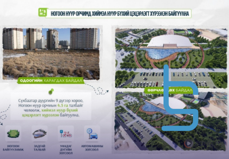 НОГООН НУУР ОРЧИМД ЦЭЦЭРЛЭГТ ХҮРЭЭЛЭН БАЙГУУЛАХААР 69 НЭГЖ ТАЛБАРЫГ ЧӨ… 3 цагийн өмнө